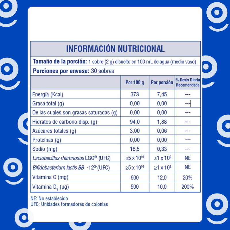 Gracias a la combinación de dos probióticos (Lactobacillus rhamnosus GG ® y Bifidobacterium lactis BB-12 ®), junto con vitaminas D y C, Muno Start ayuda a fortalecer sus defensas naturales protegiéndolos de infecciones comunes, y apoyando un sistema inmune saludable.¹²